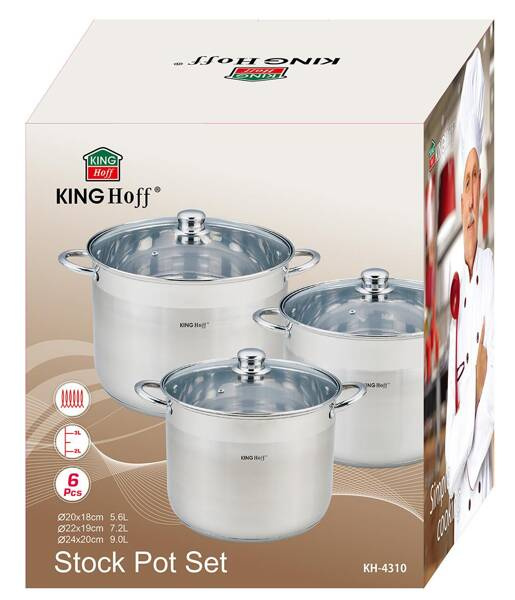 Zestaw garnków 6 elementów, stal Ø20,22,24cm Kingh KH-4310