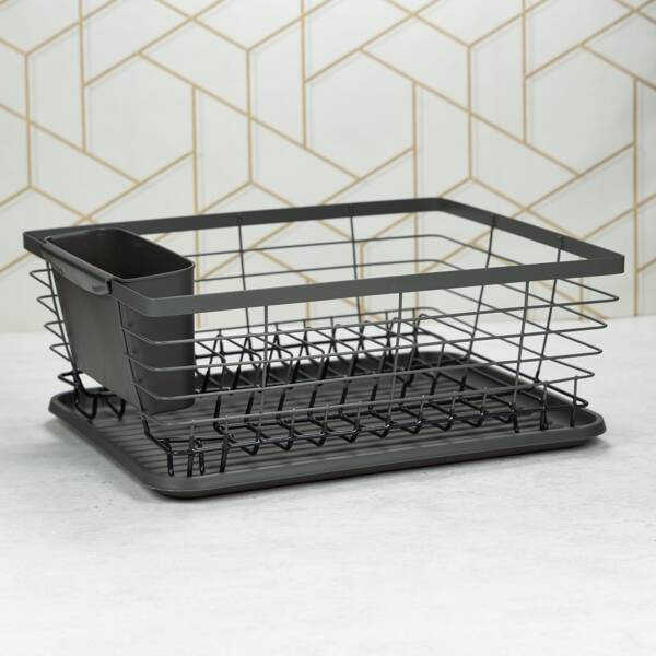- Ociekacz do naczyń z matą, czarny, wykonany z wysokiej jakości metalu to niezwykle funkcjonalne akcesorium, które stanie się niezbędnym elementem wyposażenia każdej kuchni. Wygodne suszenie naczyń na odpowiednio zaprojektowanej suszarce zapobiega nieuważ