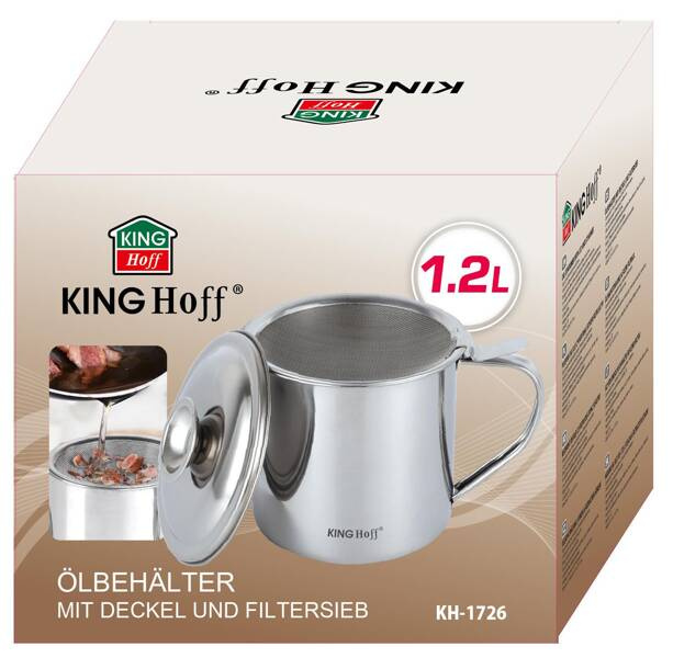 Pojemnik na olej z pokrywką i sitkiem filtrującym, stal 1,2 l KINGHo KH-1726