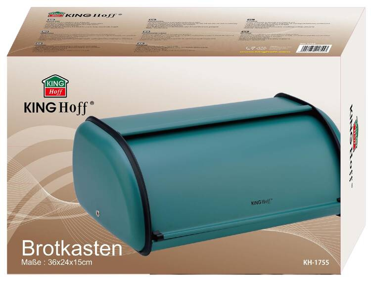 - Pojemnik do przechowywania pieczywa wykonany ze stali w kolorze zielonym.