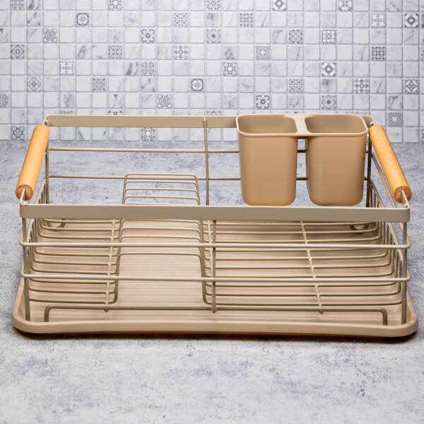Suszarka do naczyń, stal-plastik-drewno, beżowy KINGHo KH-1800