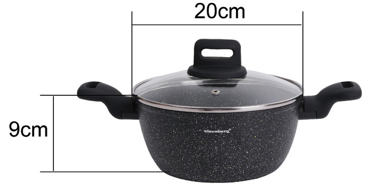 Garnek, kolor czarny-marmurek, Ø20cm, 2,36L Klausber KB-7670