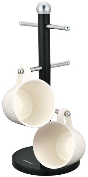 - Stojak na 6 kubków wykonany jest ze stali pokrytej proszkową farbą, dzięki której odporny jest na zarysowania. Posiada solidną konstrukcję i masywną podstawę dzięki czemu stojak na filiżanki jest stabilny.