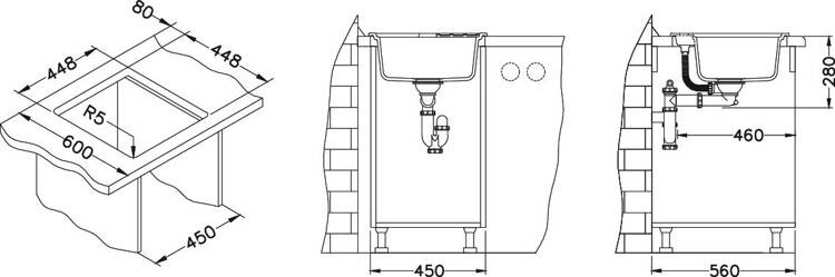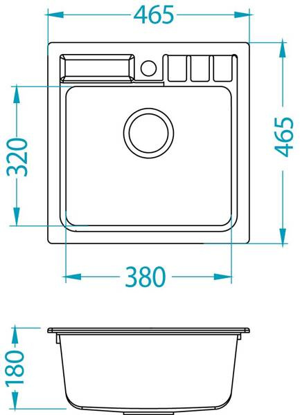 - Wymiary zlewozmywaka: 465x465x180 mm