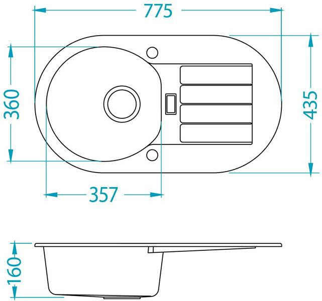 - Wymiary zlewozmywaka: 775x435x160 mm