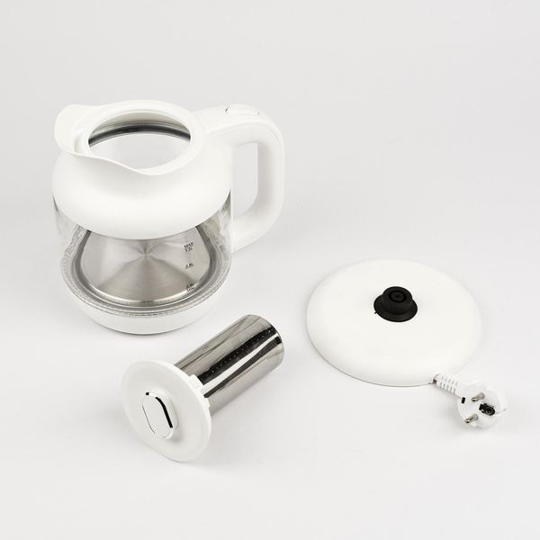 - Moc: 1370–1630 W Pojemność 1,2 l Pojemnik szklany z podziałką Wyjmowany filtr ze stali nierdzewnej do herbaty i naparów Zabezpieczenie przed przegrzaniem Ukryty element grzewczy Automatyczne wyłączanie i niebieskie światło LED Obrót o 360° Zwijacz kabla w