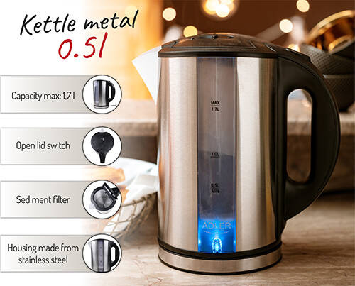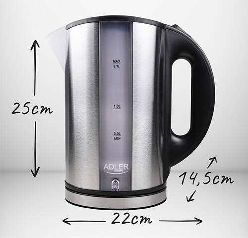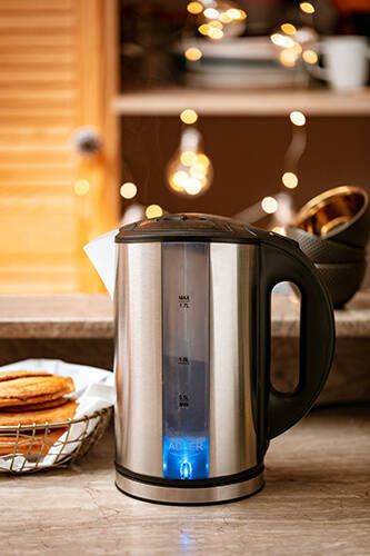 - Duży, elektryczny czajnik rodzinny, pozwalający sprawnie zagotować wodę na herbatę dla 6-7 osób dzięki mocy 2200 W. Łączy nowoczesne wzornictwo z ergonomią. Zaopatrzony jest w wyraźny wskaźnik poziomu wody, wyłączy się automatycznie po jej zagotowaniu. Bl
