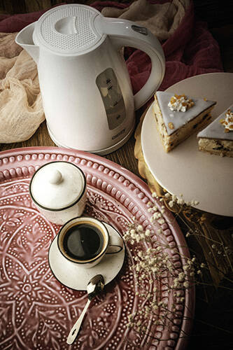 - Duży, elektryczny czajnik rodzinny, pozwalający sprawnie zagotować wodę na herbatę dla 6-7 osób dzięki mocy 2200W. Zaopatrzony w wyraźny wskaźnik poziomu wody, wyłączy się automatycznie po jej zagotowaniu. Blokada uniemożliwi również włączenie pustego cza