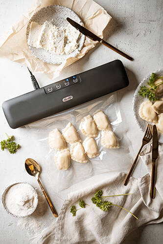 - Pełen cykl odsysania i zgrzewania zależy od wielkości, wilgotności oraz rodzaju żywności i może wahać się od 20 sekund do 1 minuty