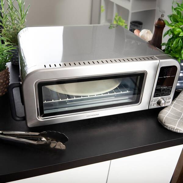 GASTRONOMA Piec do pizzy z airfryer 18310019 to wszechstronne urządzenie, które łączy funkcje piekarnika do pizzy i frytkownicy na gorące powietrze. Dzięki innowacyjnej technologii wysokiej temperatury i cyrkulacji powietrza, urządzenie umożliwia przygotowanie idealnie chrupiących frytek, soczystych steków, a nawet autentycznie wypieczonej pizzy. To sprzęt, który staje się niezbędny w każdej kuchni, oszczędzając miejsce i czas, bez kompromisów w jakości potraw.