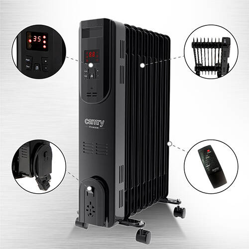- Wydajny grzejnik olejowy z pilotem zdalnego sterowania i czytelnym wyświetlaczem LED. Pozwala dogrzać pomieszczenie, w którym brakuje kaloryferów lub są one niedostatecznie wydajne. Niezastąpiony w czasie awarii systemu ogrzewania. Grzejnik daje możliwość