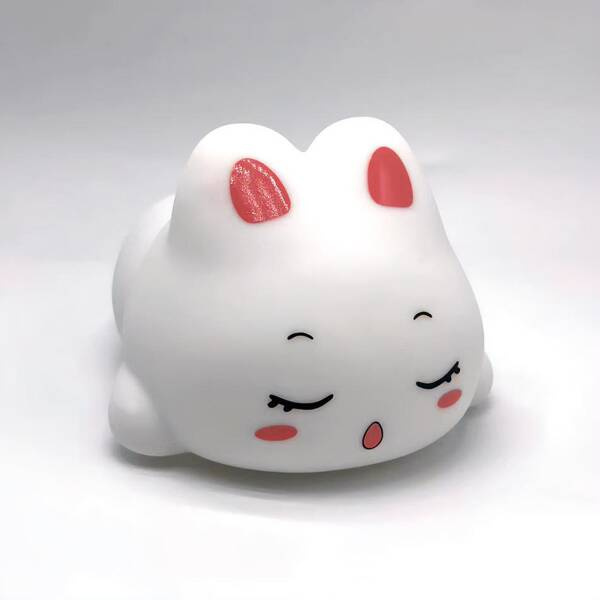 POKKY Dreaming Bunny - Silikonowa, multikolorowa lampka nocna z akumulatorem. Steruj za pomocą klepnięcia lub dostarczonym pilotem. 17 kolorów, 3 poziomy jasności, timer czasowy. USB do ładowania.
