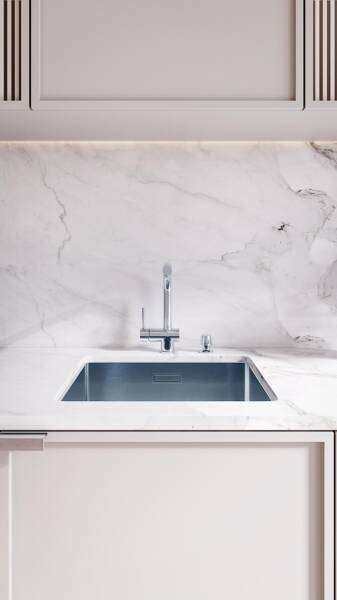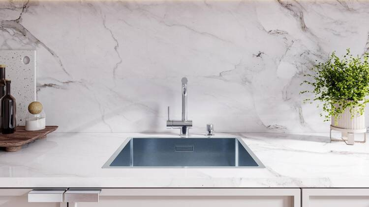 - Trzy sposoby montażu – zlew Riwolo możesz umieścić na blacie, pod blatem lub zlicować na równi z nim.