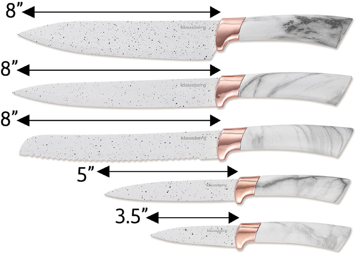 Noże kuchenne w stojaku, kolor biały, z brązowym wzorem, zestaw 6 elementów, Klausberg, KB-7769 KB-7769