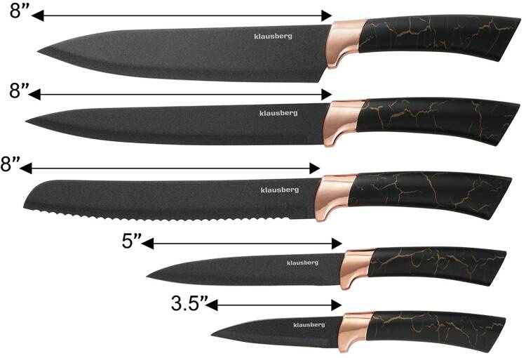 Noże kuchenne w stojaku, kolor czarny, z brązowym wzorem, zestaw 5 elementów, Klausberg, KB-7799 KB-7799
