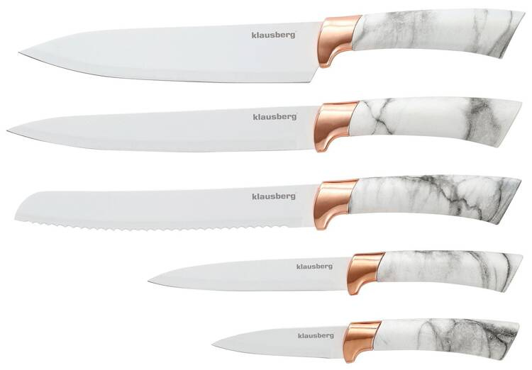 Noże kuchenne w stojaku, kolor biały, z brązowym wzorem, zestaw 5 elementów, Klausberg, KB-7800 KB-7800