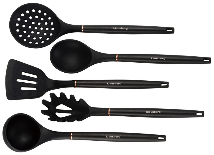 Zestaw przyborów kuchennych, noży, narzędzi i deska do krojenia, kolor czarny, Klausberg, KB-7835 KB-7835