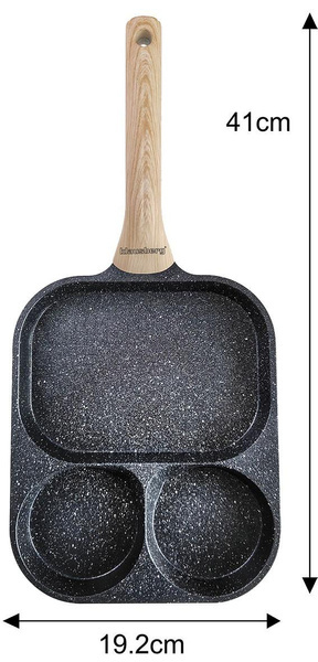 Patelnia prostokątna z powłoką nieprzywieralną, 3 sekcje, czarna z drewnianą rączką, 41x19,2x2,8cm, Klausberg, KB-7827 KB-7827