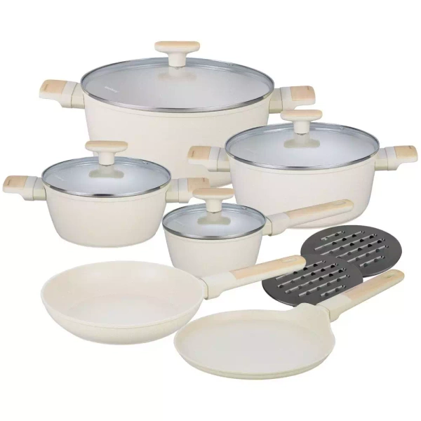 Garnki w zestawie, 12 elementów, z powłoką nieprzywieralną, beżowe, Klausberg, KB-7833 KB-7833