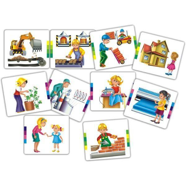 Mieszkasz w domu, w szafie trzymasz swoje ubranka, ale jak to powstało, skąd się to wzięło? Jakie czynności trzeba wykonać, aby zbudować dom? Jak powstają meble? Jak zrobiono moje ubranie?W zestawie znajduje się 15 plakietek z rysunkami 3 cykli produkcyjnych. Aby ułożyć pięć plakietek w proces produkcyjny, trzeba najpierw zadać trochę pytań dorosłym. Sprawdzisz sam, czy ułożyłeś właściwie, dzięki barwnym znakom na bokach plakietek. Powodzenia