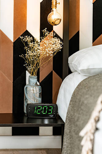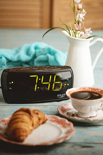 - Niewielki, ale estetyczny i bardzo skuteczny radiobudzik. Odbiera fale FM/AM, może budzić zarówno aktywując odbiór wybranej rozgłośni, jak i z pomocą wybranego dzwonka. Pokazywana godzina jet doskonale widoczna, dzięki wyświetlaczowi ledowemu i cyfrom o w