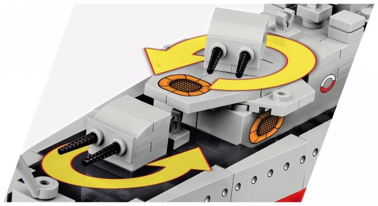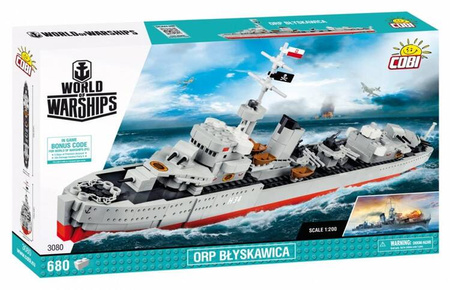 - Cobi Klocki World of Warships 680 elementów - ORP Błyskawica Jednostka polskiej Marynarki Wojennej, niszczyciel typu Grom. Zaprojektowany w Wielkiej Brytanii polski niszczyciel był jednym z dwóch okrętów typu Grom, jednych z najszybszych i najciężej