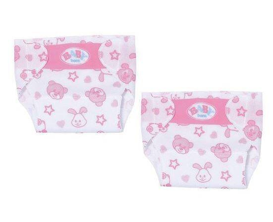 - Śliczne pieluszki dla Twojej BABY born. Miękki biało-różowy materiał zapewnią komfort, a dwa zapięcia na rzepy sprawią, że pieluszka nie przemieści się, cokolwiek by się nie wydarzyło. Dzięki uroczym nadrukom w różowe gwiazdki, serduszka i wesołe buzie