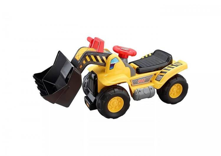 Dziecko może samodzielnie sterować łyżką koparki dwoma dźwigniami. Jeździk posiada wielkie opony i wydaje realistyczne dźwięki pojazdu. Pod siedzeniem znajduje się schowek.