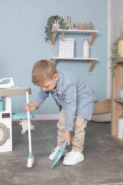 Kuchnia z dźwiękiem gotowania oraz strefą sprzątania z pralką w 1 produkcie. W zestawie 36 akcesoriów w tym: akcesoria do gotowania takie jak garczek, naczynia, akcesoria do sprzątania takie jak szufelka i miotła, akcesoria do prania takie jak pudełeczka na detergenty, suszarka ze spinaczami oraz deska do prasowania z żelazkiem.