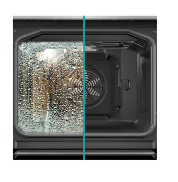 - Drzwi piekarnika są podwójnie oszklone szybami refleksyjnymi. Dlatego zewnętrzna strona drzwi jest zawsze zimna. Bezpieczne i energooszczędne drzwi pozwalają piekarnikowi osiągnąć klasę energetyczną A-20%. Wewnętrzna strona drzwiczek piekarnika jest gładka ani ma krawędzi, aby umożliwić łatwe czyszczenie.