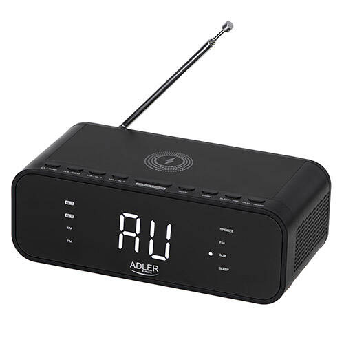 AD 1192 black Radiobudzik z bezprzewodową ładowarką i FM