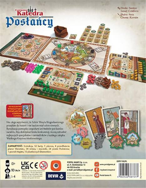 Posłańcy to duży dodatek do gry Czerwona Katedra, w którym znajdziemy karty aż 30 nowych kart Gildii oraz zupełnie nowy moduł Posłańcy poszerzający rozgrywkę o dodatkową planszę mapy. Wysyłaj Posłańców do różnych miast, aby rekrutować najlepszych specjalistów i wykorzystać ich silne umiejętności do pomocy w budowie katedry.