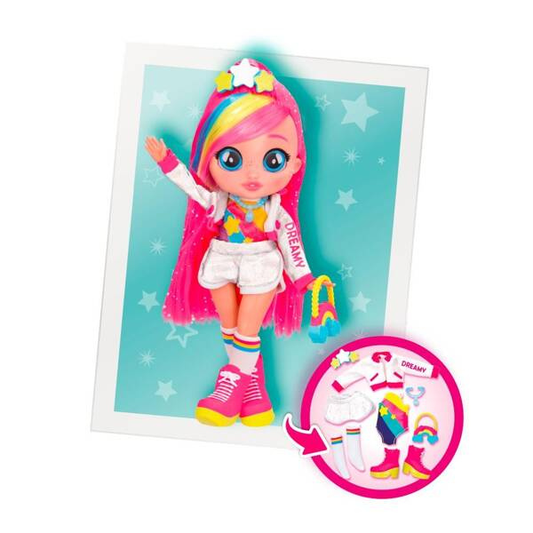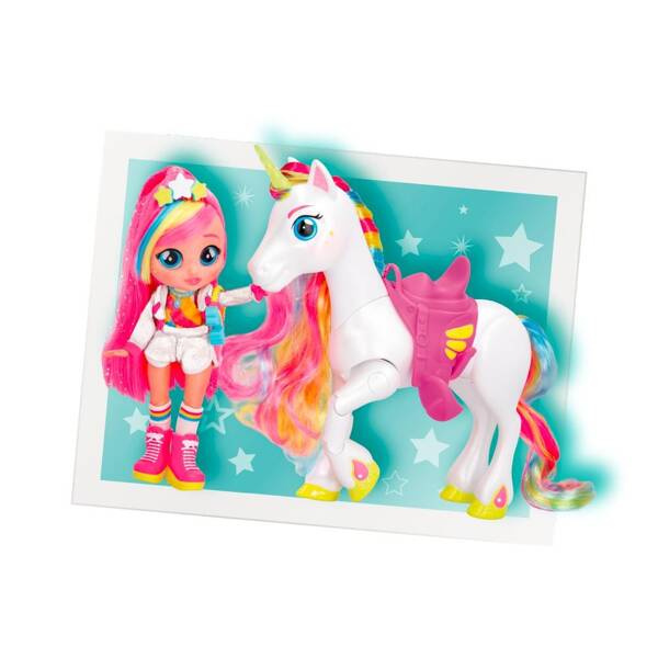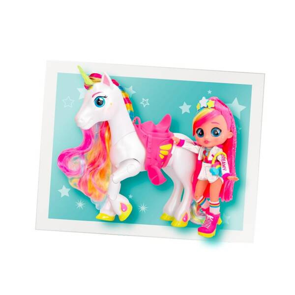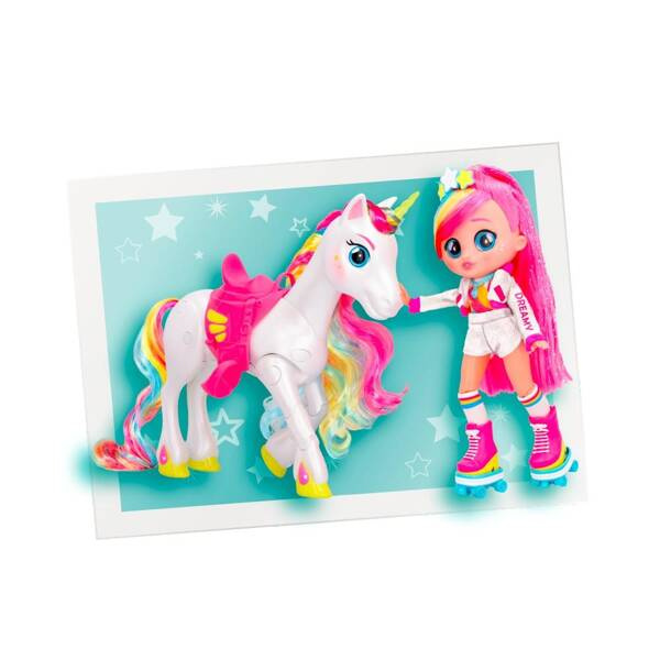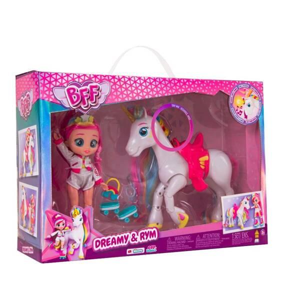 - Dzięki laleczce BFF Dreamy i jej jednorożcowi Rymowi zabawa może być jeszcze przyjemniejsza. Róg Rym świeci i wydaje dźwięki, gdy naciśniesz na jego główkę. To magiczna chwila, a przeżywanie