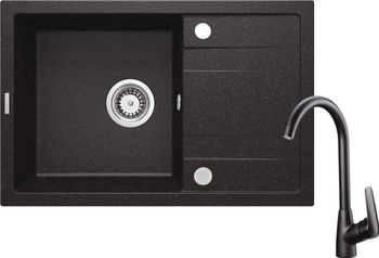 Zlewozmywak granitowy z baterią 1-komorowy z ociekaczem (ZRCB2113) - Deante